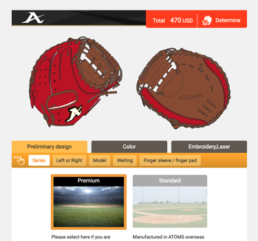 With this ordering system, anyone can create your own original gloves simply by selecting the options displayed on the screen.